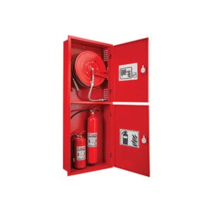 فایرباکس دو کابین: دارای دو محفظه است یکی برای شلنگ و دیگری برای کپسول آتشنشانی بهترین انتخاب برای ساختمانهای اداری و تجاری است چون همه تجهیزات را یکجا در دسترس قرار میدهد.